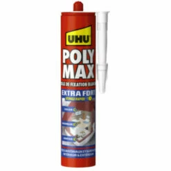 La colle Mastic Extra Forte Polymax UHU Blanc cartouche – 425 g – 33817 convient pour le collage, l’étanchéité et le bouchage, avec une prise initiale très forte et une grande résistance rapide. Le produit s’utilise sur la grande majorité des matériaux (verre, pierre, fer, aluminium, acier et tant d’autres) et également sur des nombreux supports, qu’ils soient lisses, poreux ou non poreux. Après les travaux, la colle est inodore, en plus de disposer d’une résistance aux températures extrêmes, à l’eau, aux UV et aux intempéries.