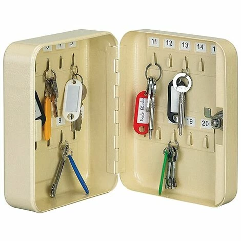 Boite à clés, 24 crochets, 250 x 180 x 80 mm. beige, Boite à clés, 24 crochets, 250 x 180 x 80 mm. beige