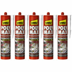 Un lot de 5 colles mastic Prise Immédiate Polymax UHU Blanc cartouche – 425 g