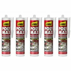 Lacolle Mastic Prise Immédiate Polymax UHU Invisible cartouche – 300 g – 33883 convient pour le collage, l’étanchéité et le bouchage, avec une prise initiale très forte et une grande résistance rapide. Le produit s’utilise sur la grande majorité des matériaux (verre, pierre, fer, aluminium, acier et tant d’autres) et également sur des nombreux supports, qu’ils soient lisses, poreux ou non poreux. Après les travaux, la colle est inodore et invisible, en plus de disposer d’une résistance aux températures extrêmes, à l’eau, aux UV et aux intempéries.