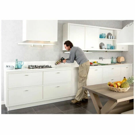 - Injecter le mastic uniformément dans le joint et lisser dans les 1 minutes avec un couteau à enduire mouillé d’une solution savonneuse ou avec le UHU Silicone Multi-Tool