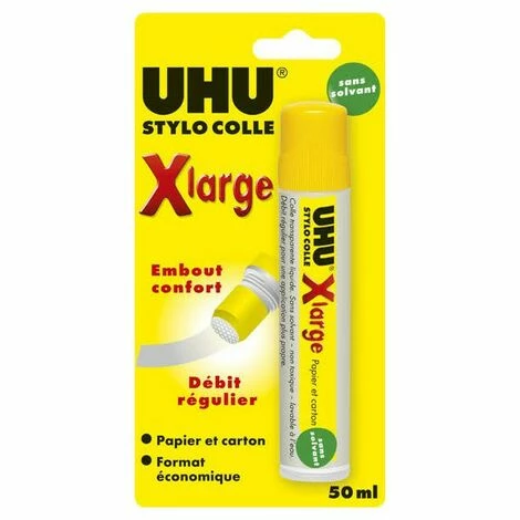 Stylo de colle X’large UHU avec embout tissu, lavable à l’eau. Sans solvant .